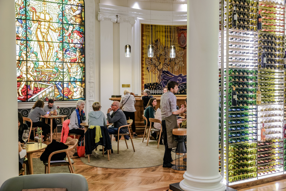Entirely redesigned by architect Françoise Bousquet, the Bar à Vin blends neo‑classical architecture with contemporary design, pairing noble materials with clean lines inspired by the world of wine.