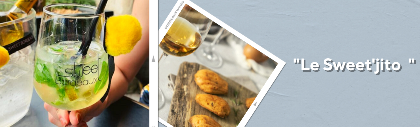 In a large glass on a little crushed ice, pour 8 cl of sweet and fruity Bordeaux wine (AOC Sainte Croix du Mont for example). Add 1 mint leaf and a lime slice. Finish with 2 cl of sparkling water.