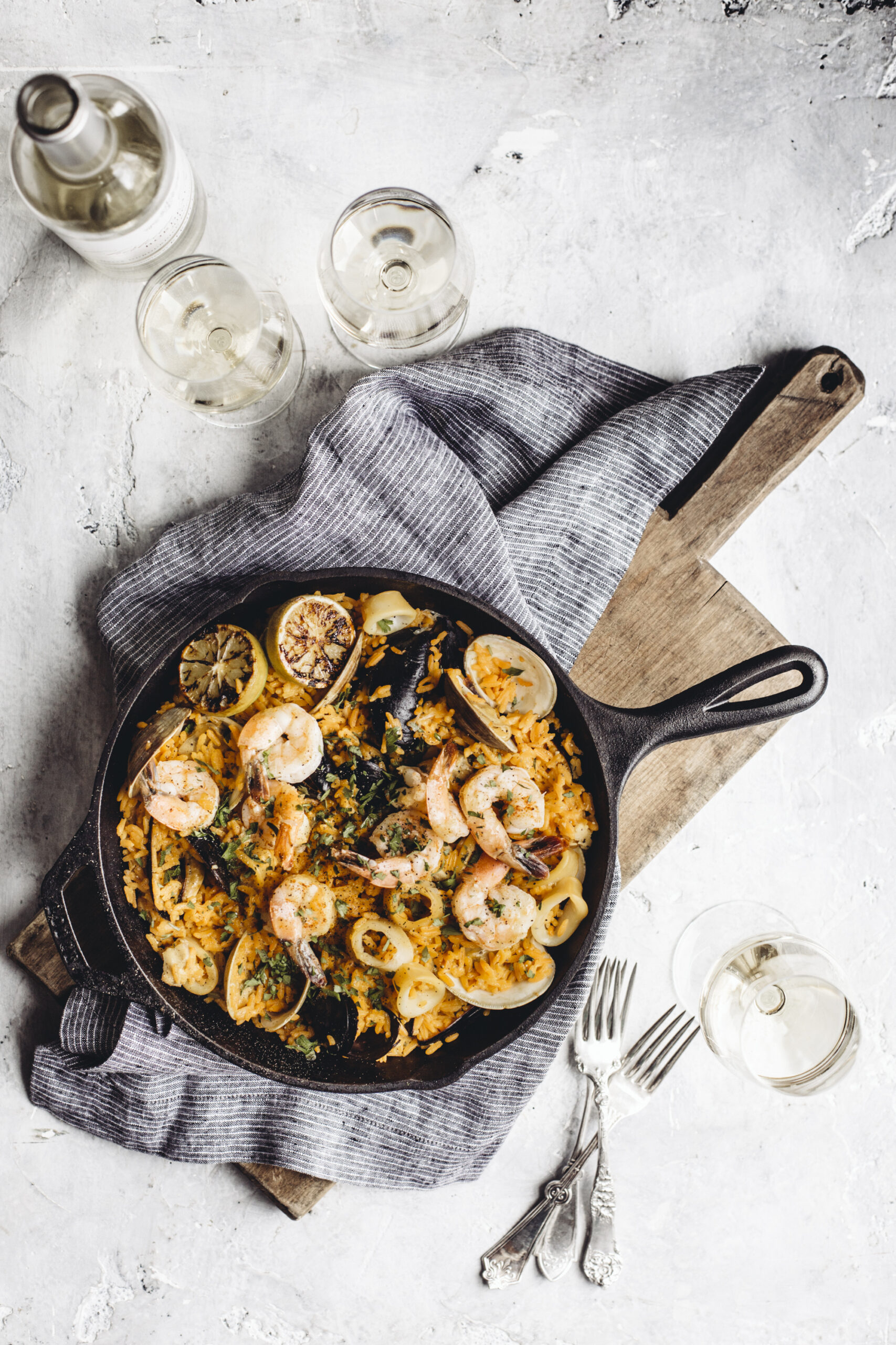 Un blanc ample et lumineux glisse parfaitement dans la crème du risotto. Il apporte du relief, une petite vibration épicée, et une fraîcheur finale qui étire la bouchée.
