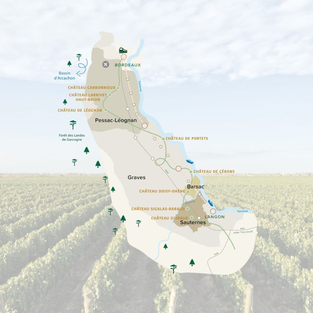 8 châteaux viticoles des AOC Pessac-Léognan, Bordeaux et Bordeaux Supérieur, Graves et Sauternes & Barsac lancent la première route des vins bas carbone, à travers des parcours Bulle Verte !