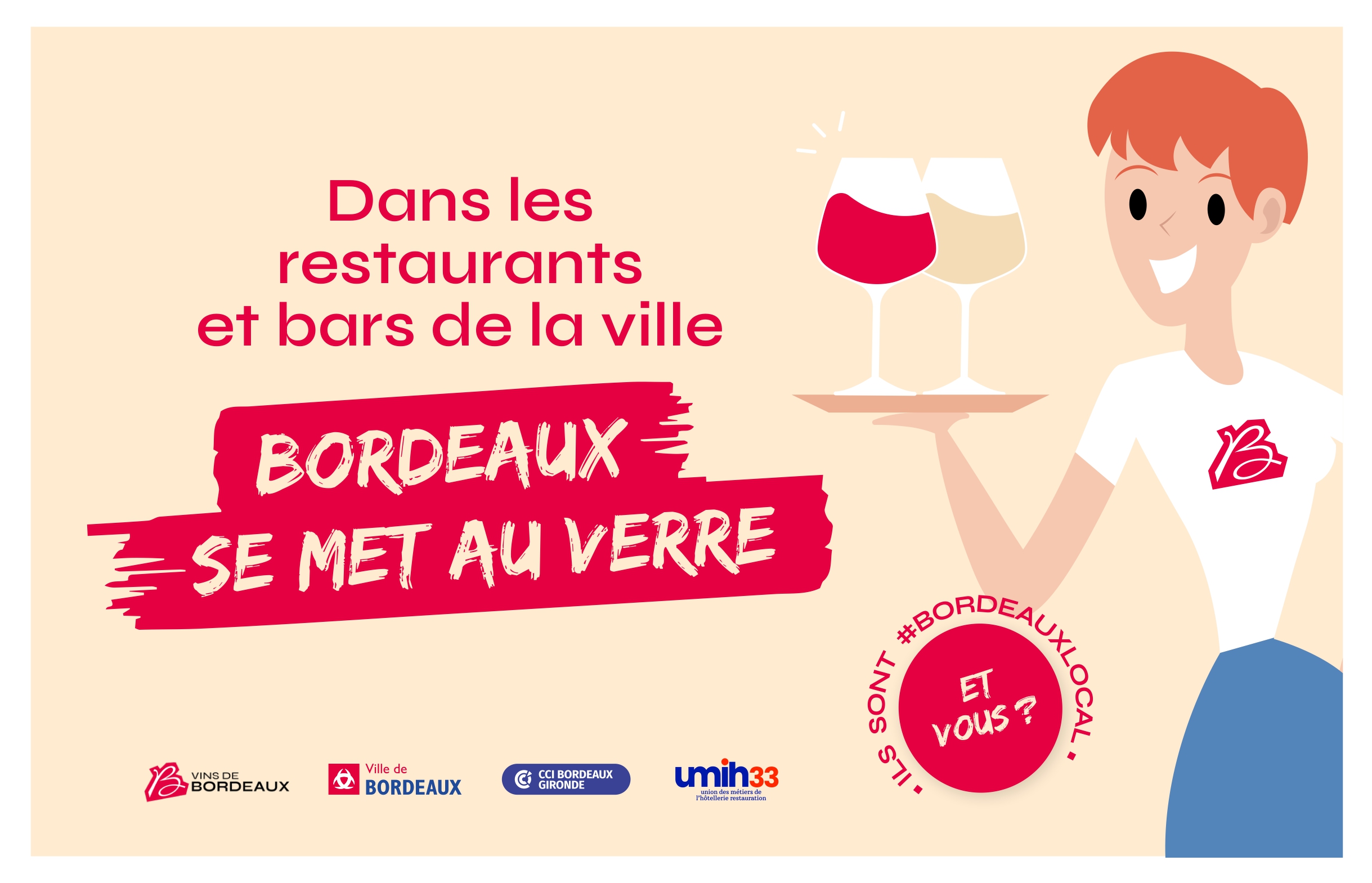 Cette initiative, menée par l’Interprofession des Vins de Bordeaux (CIVB), la Mairie de Bordeaux, la CCI Gironde et l’UMIH 33 a pour objectif de mobiliser collectivement les établissements de la ville pour mettre en avant les produits locaux à travers l’art de vivre et la gastronomie à la bordelaise !